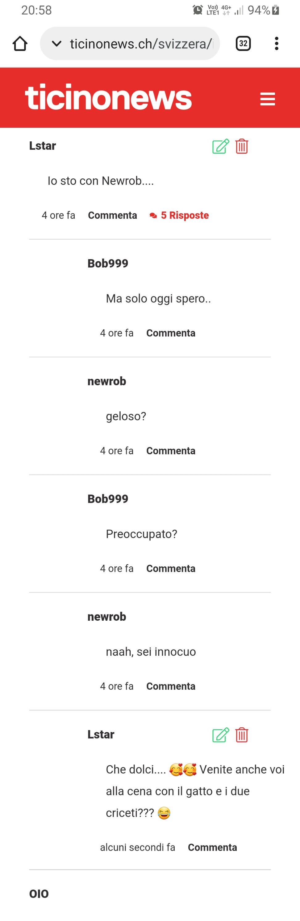 Ciao, combriccola. Premetto che a casa ma non sono previste visite di famiglia, ma in ogni caso anche se fossero più di dieci non chiederò MAI IL COVID PASS perché a casa mia faccio quello che voglio io anche alla faccia di Berna. Il mio commento che bisognava dire di NO ALLA VOTAZIONE COVID perché se gli davamo un dito si sarebbero presi la mano e poi il braccio, si sta avverando ora si sono quasi presi tutta la mano. NB IL COMMENTO LO AVEVO CANCELLATO QUASI SUBITO.